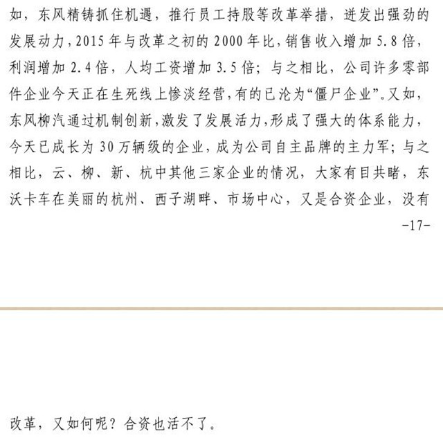 在8月6日公司年中工作會上,對公司深化改革工作進(jìn)行了研討與籌劃,一是推進(jìn)和鼎股份公司股份激勵和股利分配制度改革,強化關(guān)崗員工對公司發(fā)展的責(zé)任擔(dān)當(dāng),強化全體員工股東對現(xiàn)場改善、品質(zhì)改善、文化素養(yǎng)、節(jié)約文化、創(chuàng)新改善等方面參與性、責(zé)任性,解決股份分散性和股利分配存在的“大鍋飯”或“搭便車”問題。二是推進(jìn)東風(fēng)精鑄混合所有制結(jié)構(gòu)改革,提升員工股權(quán)比例,優(yōu)化公司決策體系,創(chuàng)新用人用工管理體制等。
