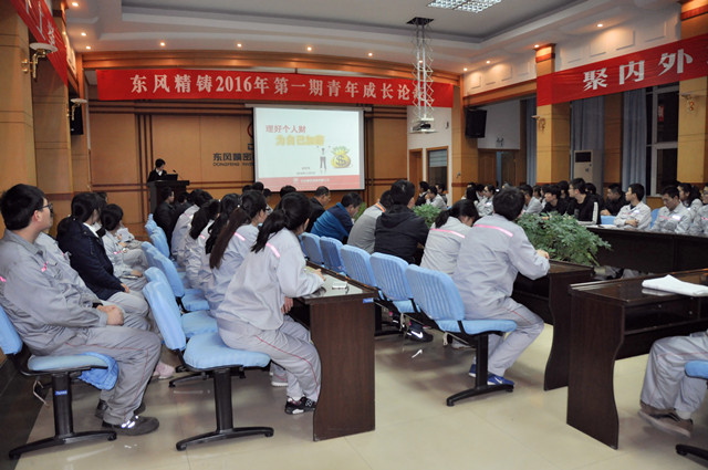 為進(jìn)一步發(fā)掘和培養(yǎng)在公司事業(yè)發(fā)展過程中各個領(lǐng)域涌現(xiàn)出的優(yōu)秀青年人才,搭建青年員工成長、工作和生活交流平臺,促進(jìn)員工快樂工作、快樂生活、快樂成長。11月15日晚7:40,東風(fēng)精密鑄造有限公司人力資源部、團(tuán)委聯(lián)合舉辦了一期以“投資理財 快樂生活”為主題的青年成長論壇。