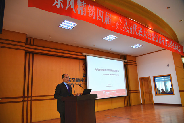 1月24日下午,東風(fēng)精鑄在五樓會(huì)議中心隆重召開第四屆一次員工代表、二次會(huì)員代表大會(huì)暨2016年度總結(jié)表彰大會(huì)。
