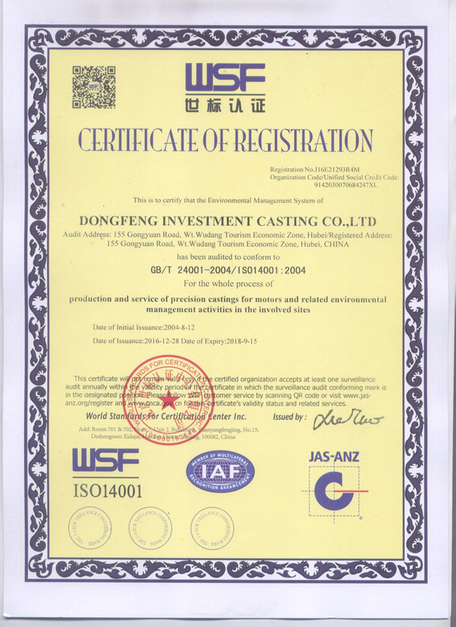 首次認證時間:2004年8月,最近復(fù)審時間2016年12月